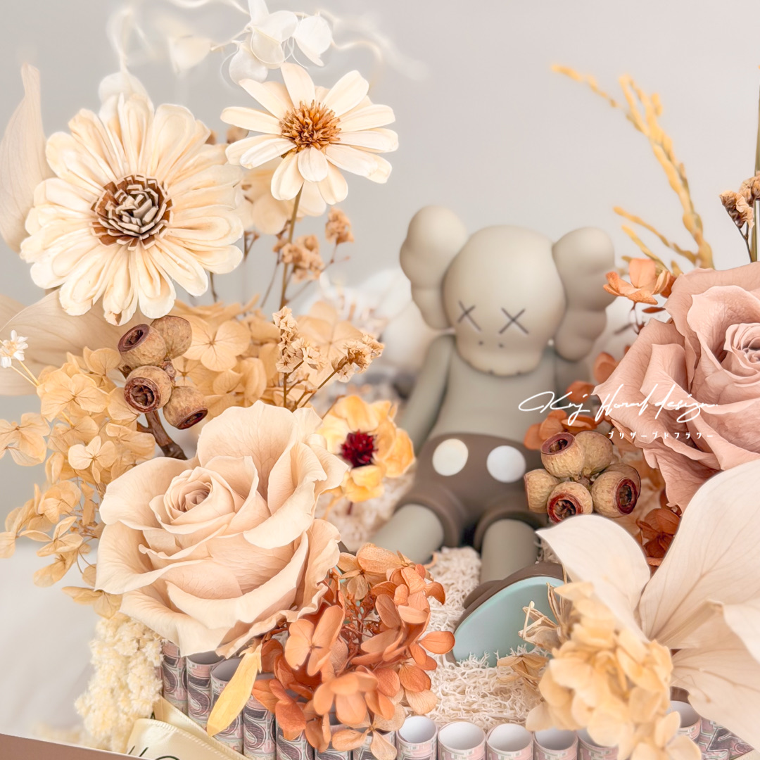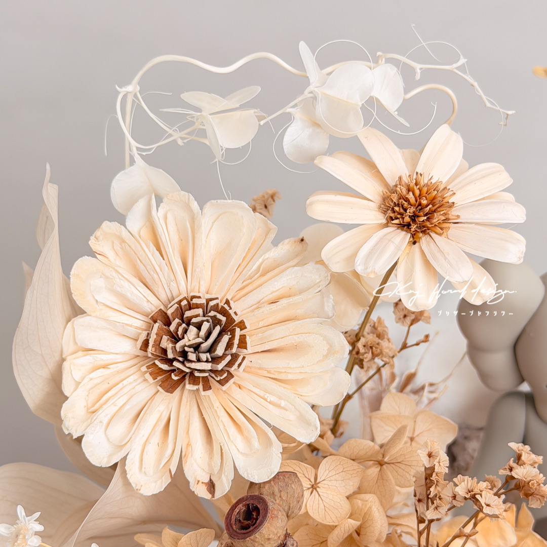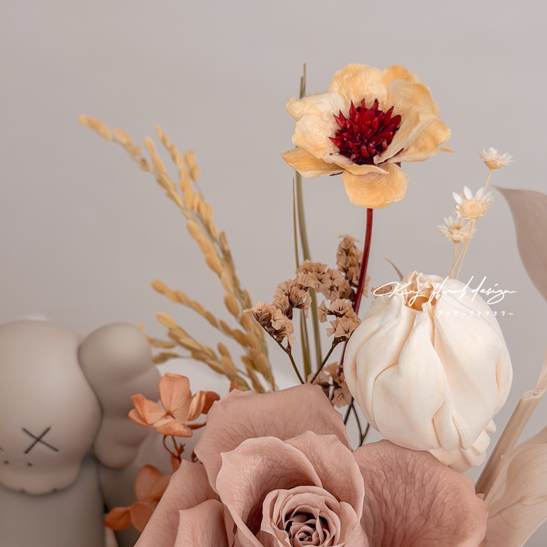 - 每樣永生花材皆為真實花材,不會有100%長一樣的作品,如遇花材稀缺請允許我們幫您換相似同等價位之花材替代。