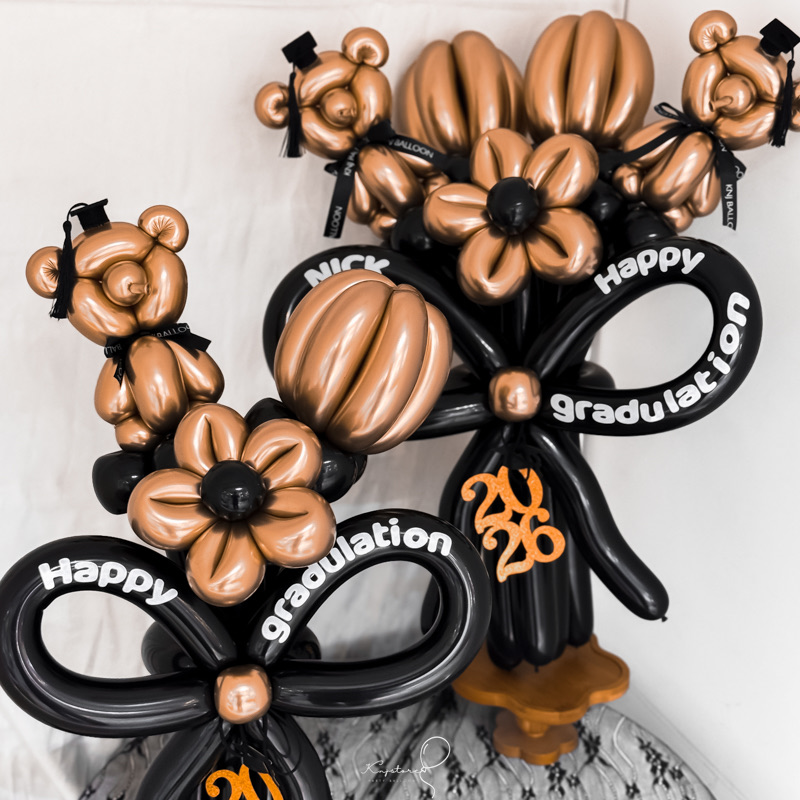 【畢業季限定】小熊畢業氣球花束.黑金色
