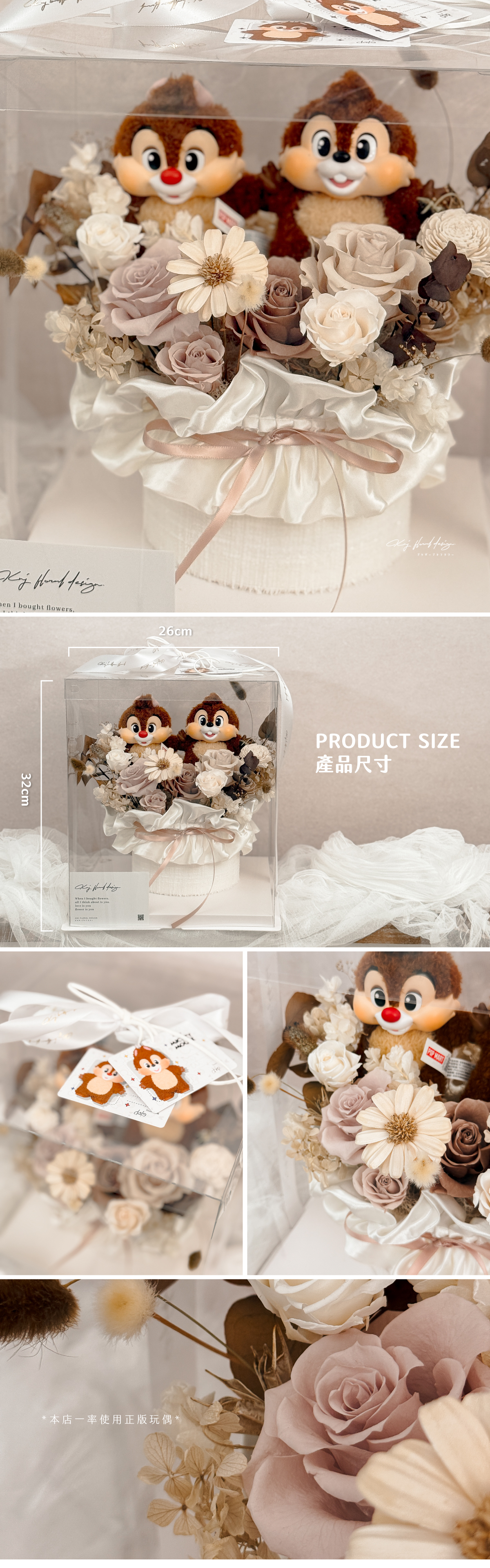 • 每樣永生花材皆為真實花材,不會有100%長一樣的作品,如遇花材稀缺請允許我們幫您換相似同等價位之花材替代。