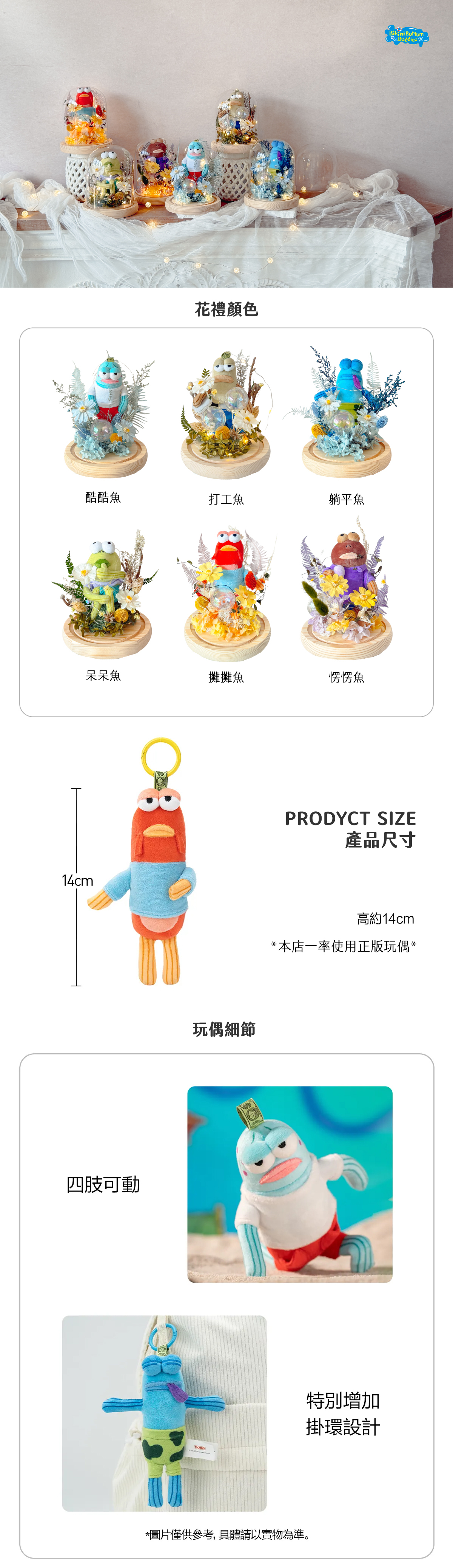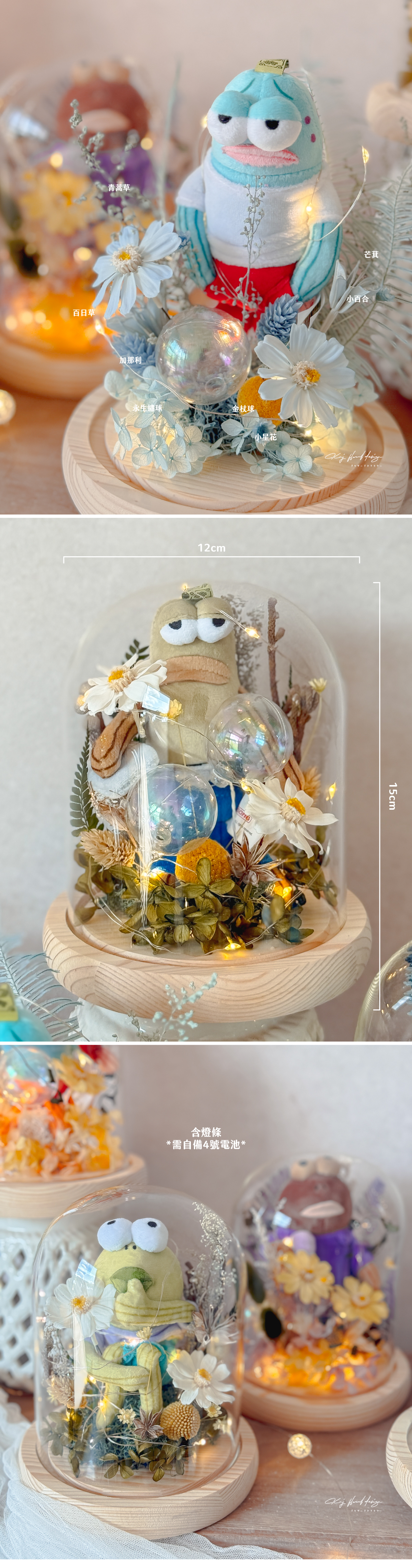 以永生花、乾燥花搭配趣味公仔